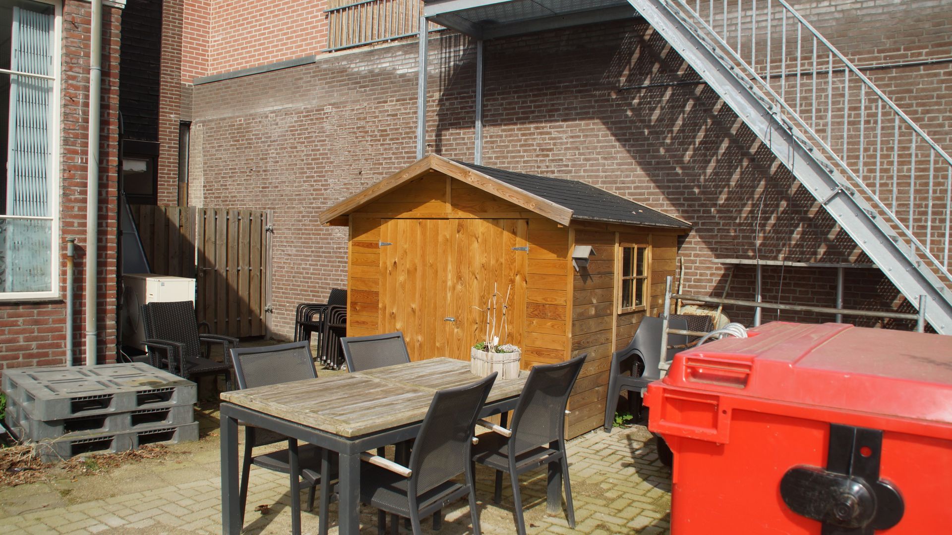 Binnen zijn 32 zitplaatsen, maar dat kunnen er ruim 70 zijn indien u de hele ruimte gaat huren.