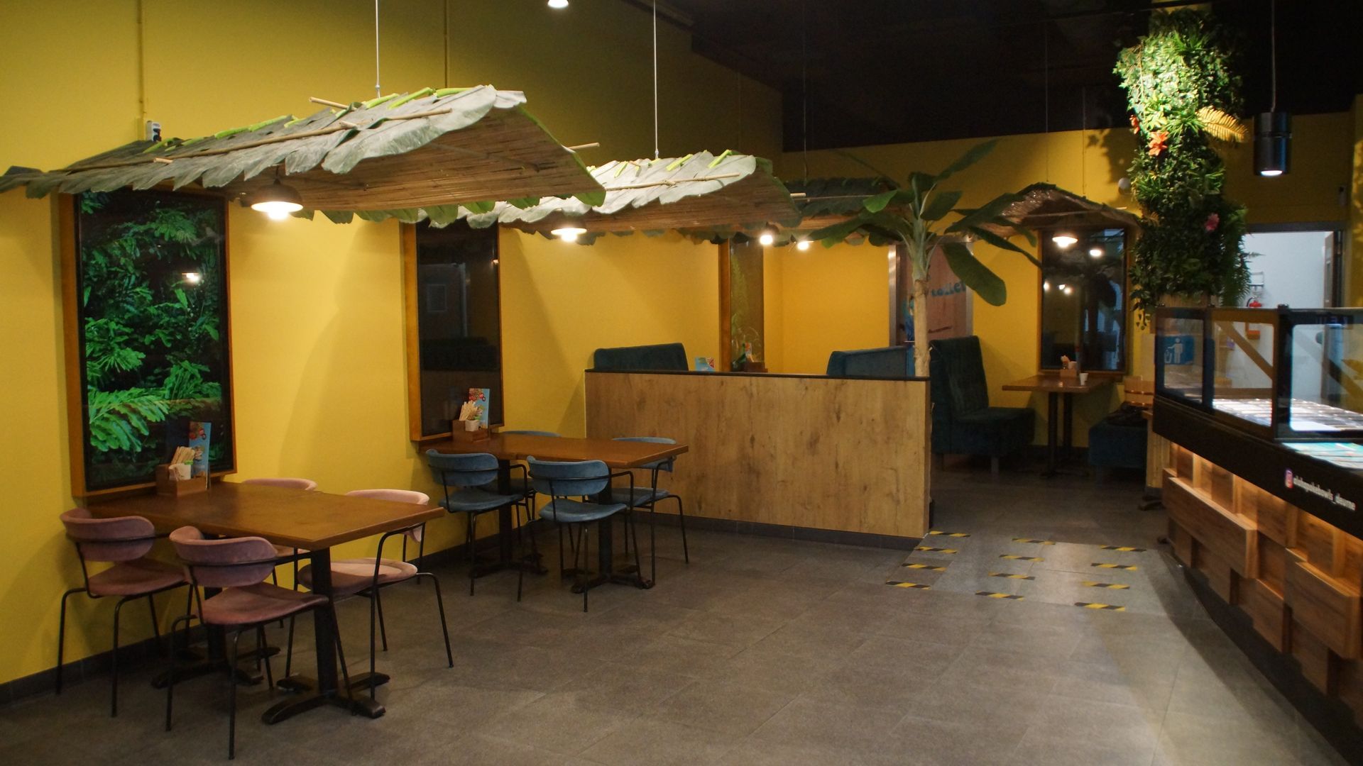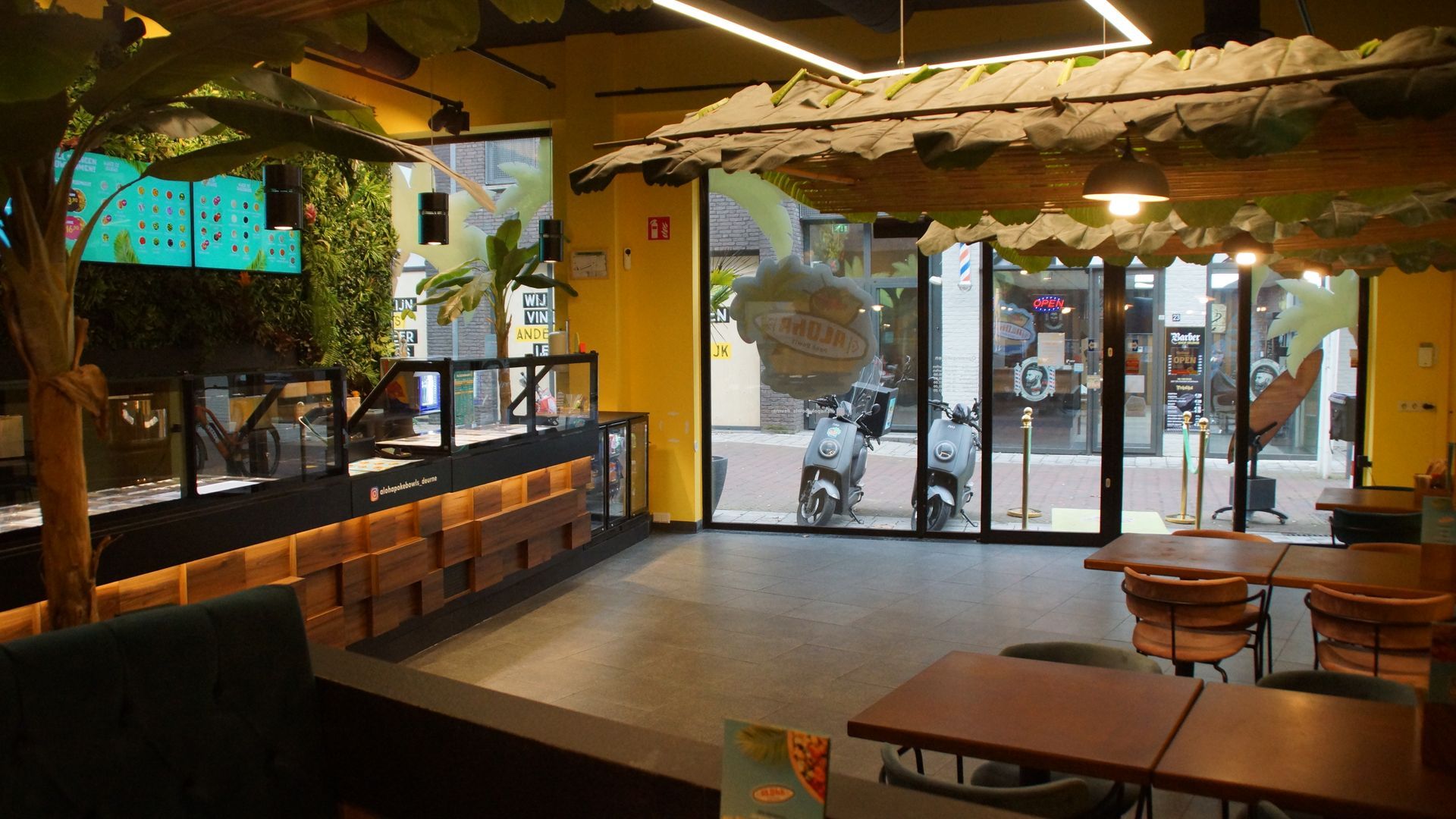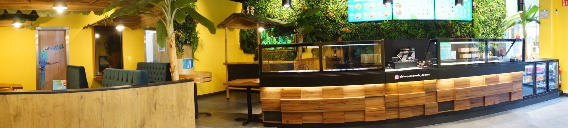 Bij het betreden van Aloha Poke Bowls waan je je voor even in een andere wereld. Uitnodigende tafeltjes met daarboven bamboe en een dak van bananenbladeren, op de achtergrond tonen schermen de Hawaïaanse zonsondergang aan het strand. Deze schermen kunnen ook gebruikt worden voor speciale persoonlijke boodschappen als er iemand jarig is of bij andere gelegenheden. De moderne bar waar de ultragezonde maaltijden bereid worden, lijkt midden in de jungle te staan.