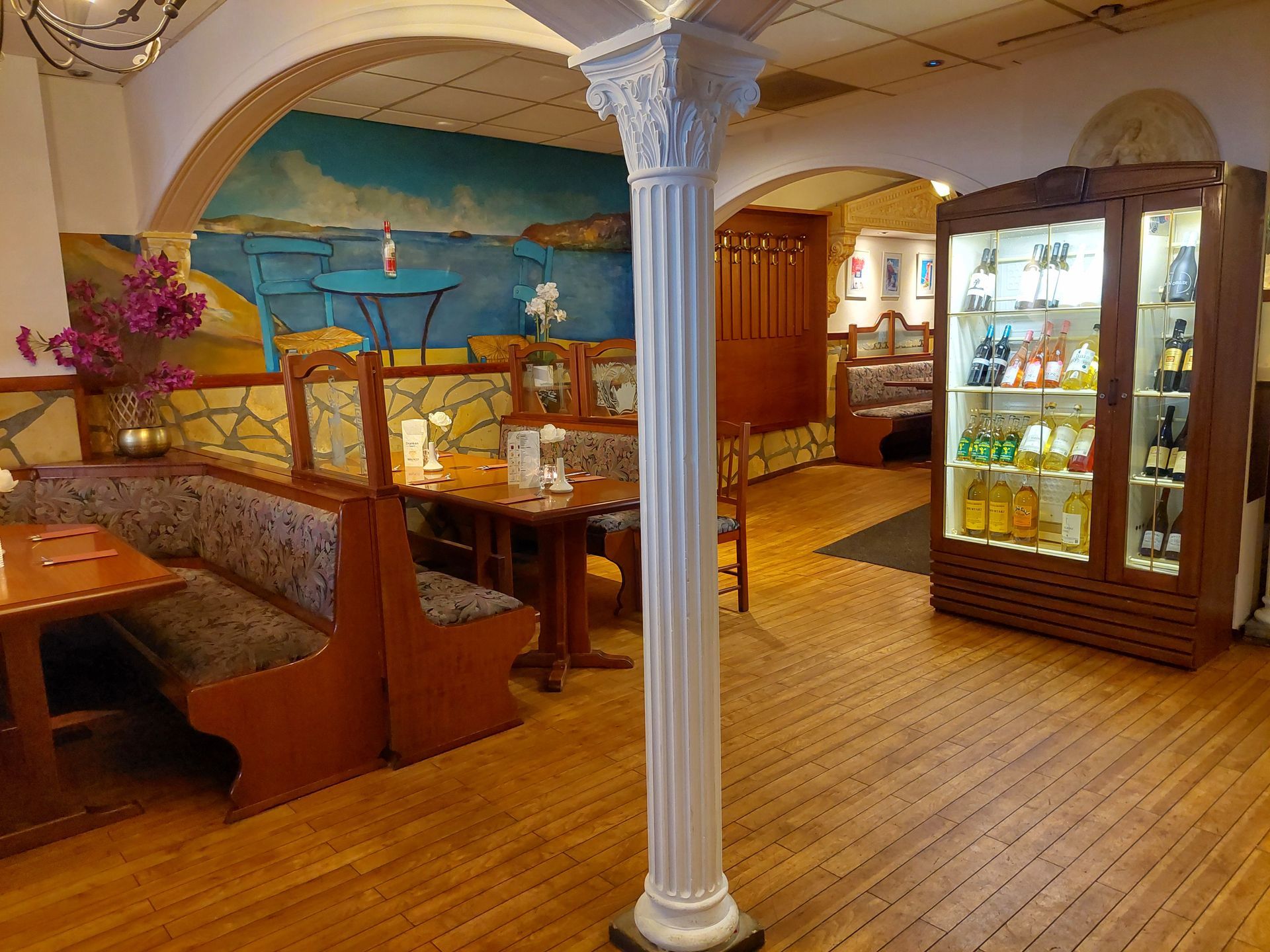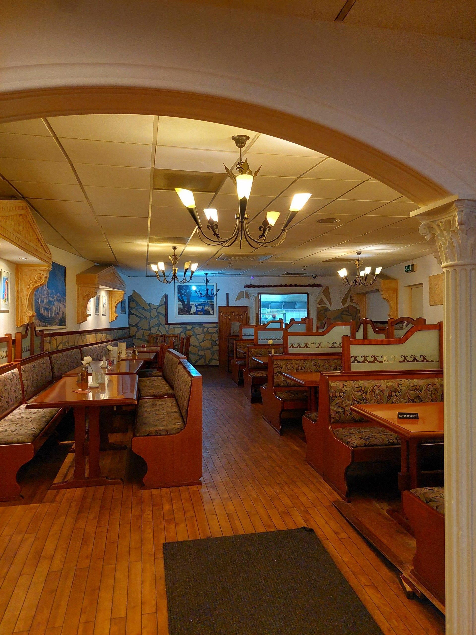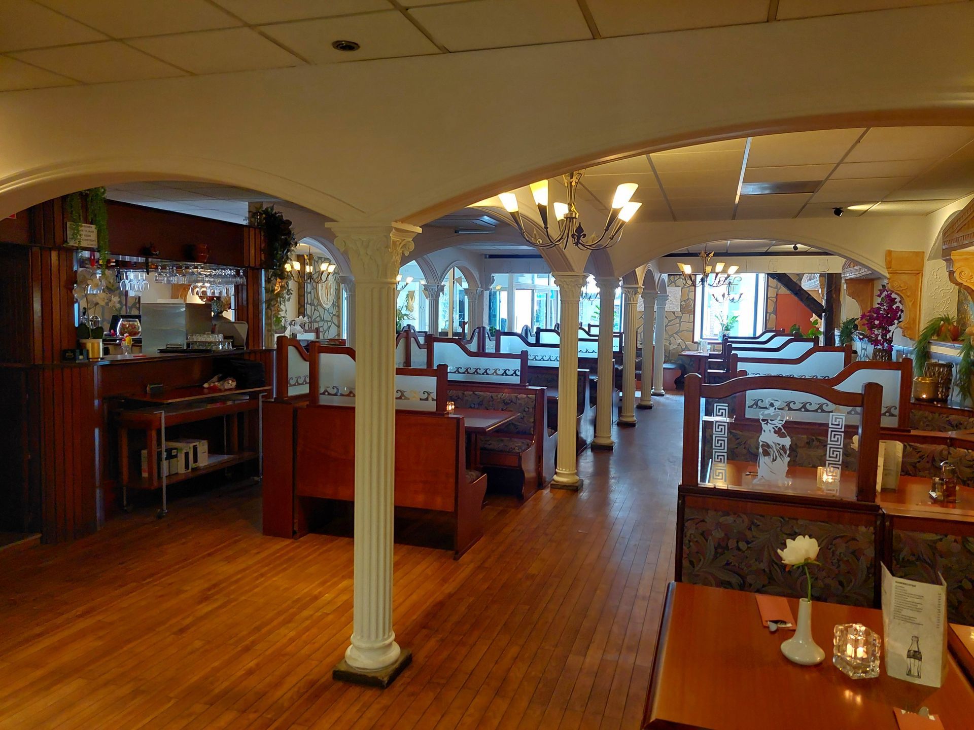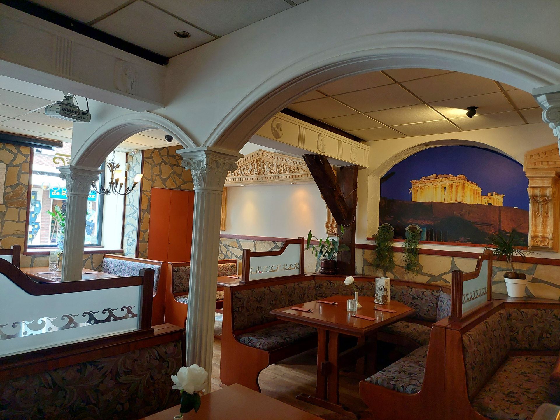 Het restaurant biedt ruimte voor 250 gasten in, zoals traditioneel in Griekenland in treinzitjes, heeft gezellige bar voorzien van alle gemakken, mooi verzorgde toiletten, ruime keuken welke ingericht is voor grote aantallen gasten en een hele ruime bovenwoning met giga dakterras welke casco gehuurd word. Ook het terras aan de voorzijde biedt ruimte voor 20 gasten en ziet er leuk mediterraan uit. De huur is € 4132,00 per maand, onderverdeeld in € 3099,00 voor het restaurant en € 1033,00 voor de woning. Voor de overname van de exploitatie (huurdersbelang, goodwill en inventaris) wordt € 69.000,00 gevraagd.