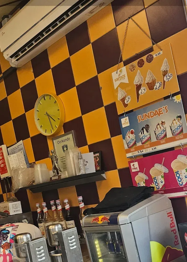Een kleine functionele snackbar, met ruimte voor 8 zitplaatsen binnen en in de zomer 4 tafels buiten.